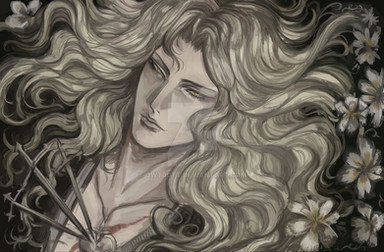 What a beautiful piece! I really love the symbolism (the blood and etc) to expand on the mood. If I knew the story more it'd probably help lmao.