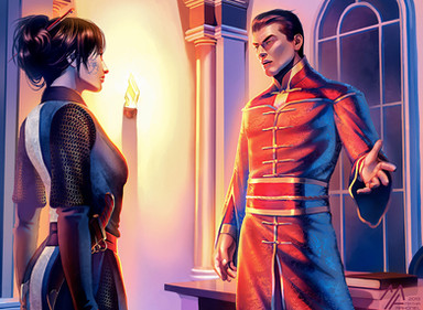 Tonight, Feliane’s job is to be a guardian in uniform with her colleagues in the main ball room of the palace on planet Mirapole. A man is approaching her to talk with her about attendees : he is prince Terrik. Feliane stays straight like English guardians at Windsor palace but she smiles and looks at him. Terrik is near her, speaking and smiling kindly.
