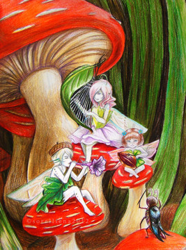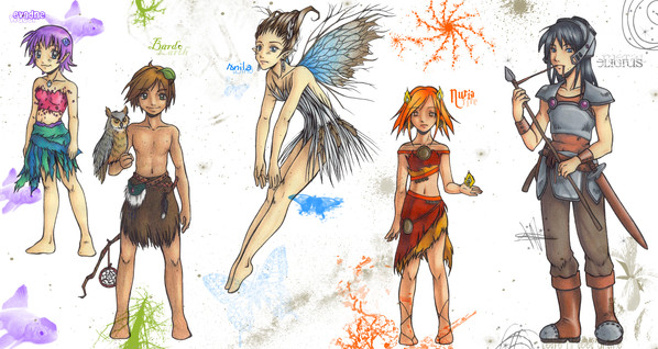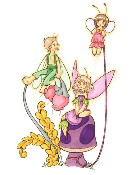 love the little auburn-haired girl to the left and the grey-skinned boy up top the best. They have classic flower-fairy expressions. Wonderful!