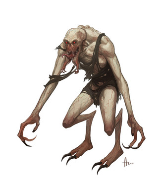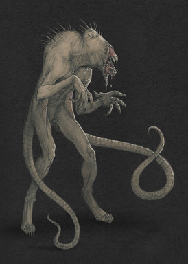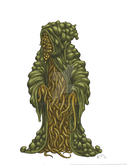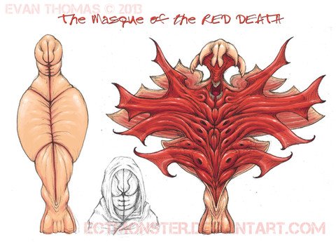 The last of the four horsemen that [link] commissioned me to draw for him. He wanted famine to be very skinny, and like all the others, have some sort of hood or cloak-like clothing. He also wanted mouths in his hands, and I was happy to oblige because that's wicked cool. He wasn't sure what he wanted for the inside body, so I suggested the vertical mouth running the length of his torso to the top of his head. I thought it'd be neat to have a cloaked figure with nothing but a great big mouth underneath.Since he is entirely fleshy, his color scheme was pretty simple, yet later on my client suggested that his "cloak" be paler than the rest of his body. It really made a huge difference and I'm glad he suggested it, it gave me a chance to experiment with some different, more unhealthy looking flesh tones. After it all came together, this one ended up being my favorite of the four, maybe because he's more akin to the monsters I usually do.
