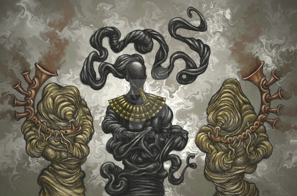 The pencil drawing for this was cool enough, but you've really captured him in the coloring The brushes that you used really give him a chipped and weathered feel!