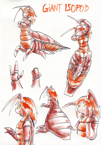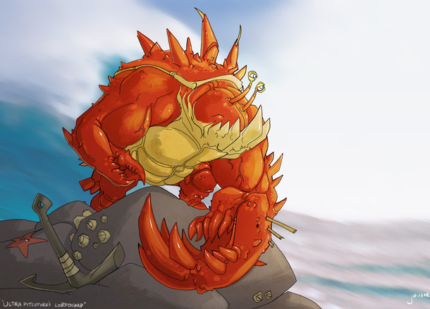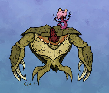 My second entry for an online Kaiju-based contest, Phorcys, an oceanic monster named after a Greek sea god. I'm still playing with the old-school kaiju idea, something that could be a suit in the old days. I had a blast basing his coloring on an Alaskan king crab, but wanted to keep him from being purely crustacean. I also wanted to show some of the early stages of his life cycle, as well as some head and claw variants and how they might change as he ages.Related content