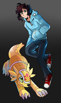 Another one of my Digimon Tamer ocs! Adrian! He has a Labramon, primarily, but also a Dracomon and Guilmon (some of my favorite digimon!)He's cool headed and can be a bit blunt, and keeps his secrets close to his chest.
