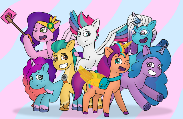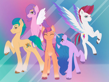 My version of The Mane 5 from My Little Pony: A New GenerationSunny, Izzy, Hitch, Zipp and Pipp By Hasbro