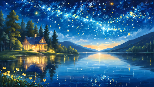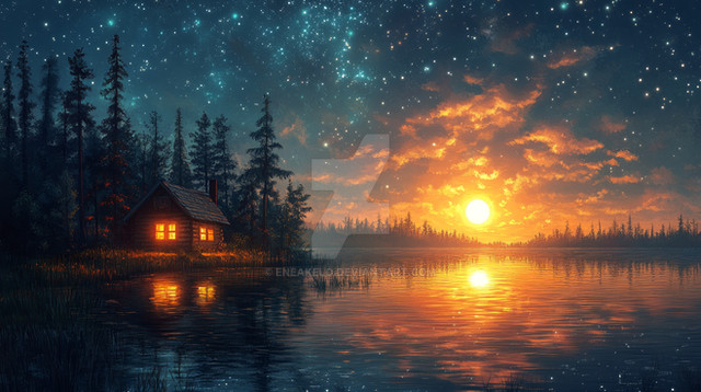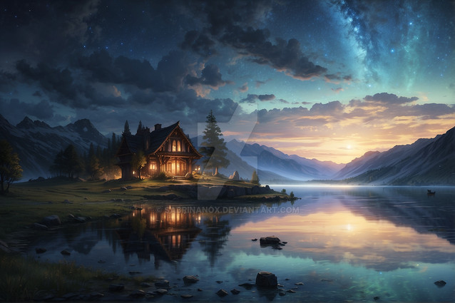 #colors #galaxy #house #lake #landscapescenery #landscapewaterscape #magic #night #nightfall #sky #stars #sunset #landscapenature