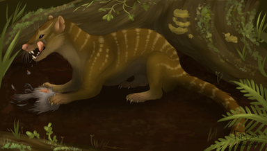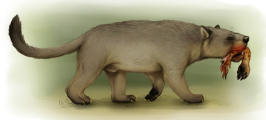 What time is it? It's time to upload more crappy paleoart!Wanted to mess around with colouring so I did a quick small sketch of Proborhyaena, a bear-sized carnivorous sparassodont. I think I failed a bit in that the teeth and jaw aren't robust/large enough, but I plan to do more accurate art eventually. Well, as accurate as an amateur paleoartist can be