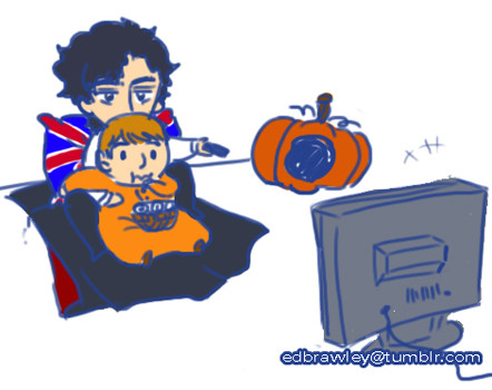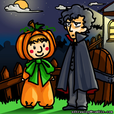 Mycroft isn't running because he isn't everybody I like the children's cartoonish look on this, and the bright background. Very nice!