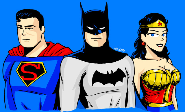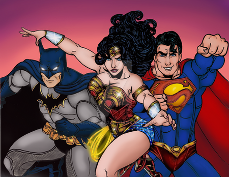 Superman, Batman and Wonder Woman. The DC Trinity.Colored version of 's collaborated drawing. Traced in Illustrator and colored in Photoshop by me.