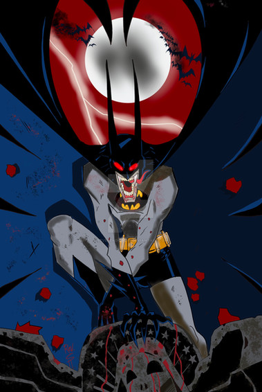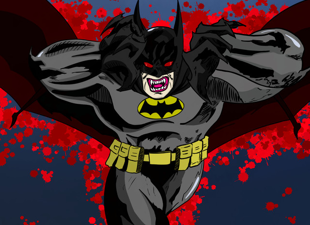 Batman as a vampire.Drawn on pencil and ink, traced in Illustrator and colored in Photoshop by me.