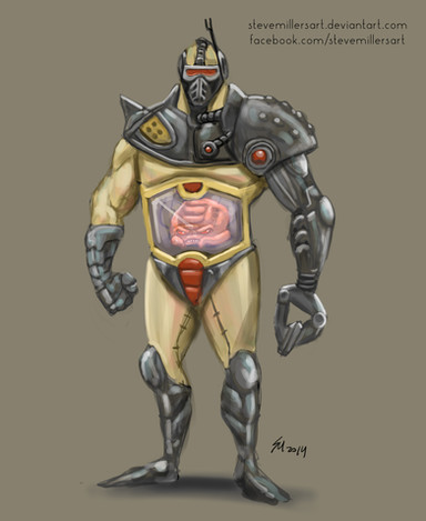 Krang in his "android" body, from Teenage Mutant Ninja Turtles. They always said this was an android body, but it was always flesh-colored, so I figured he's more of a cyborg. Thus, here he is. Not sure if I like this piece or not. Next time I'm going to have him in an action pose (assuming there is a next time).Related content