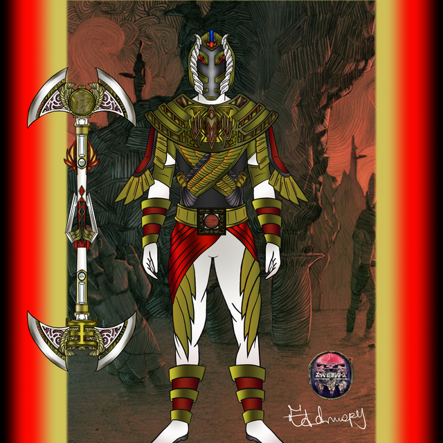 This drawing I had commissioned by All Samdelatorre did was just redraw my original design. He did not invent this ranger nor did he create the structure or armor for the ranger.It is Jason Lee Scott in his new ranger form of the god Osiris. Merged with the Zeo Gold and Mighty Morphin Red powers he is now a form of a god. Want to learn more to just look of the story of power Rangers Ancient Age on my profile.