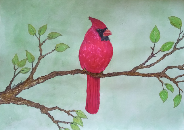 #bird #cardinal #watercolor #watercolourpencils #winterbird