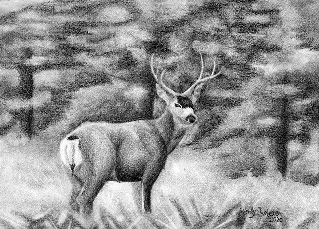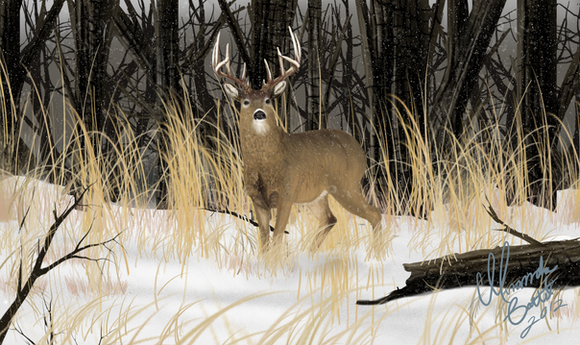 "High Alert" by Ed McNeilWhitetail Buck in a field.Β