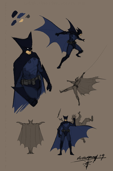 I like the full face mask shown on the bottom right. It makes Batman look a lot scarier. The glowing yellow eyes and mouth make him look like some kind of huge bat monster.