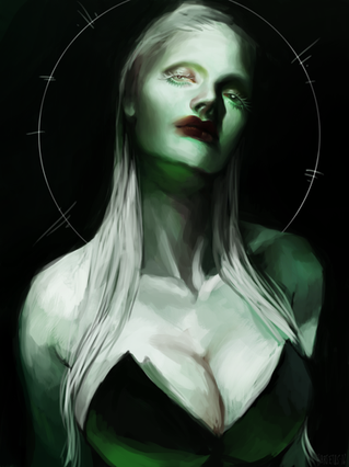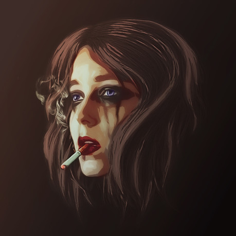 So is this an on going series with the "soulless" eyed women? I really love the dark color palette and the way you rendered the light on her face it is well done. Do you work from live models or photographic references? I really think you have a wonderful style. The painterly edges work well to give it a frenetic feel. You have a great grasp on how to paint the female face which isn't always easy. It makes one feel uneasy because you have these beautiful women and then those eyes show the darkness inside them. It could also be symbolic or metaphoric of how we can never judge someone just by looks alone. You never know how someone feels behind their outward appearance... again congrats on another successful painting. I would be interested in knowing what programs you are using. Do you use a Wacom Tablet. I would be lost without mine...