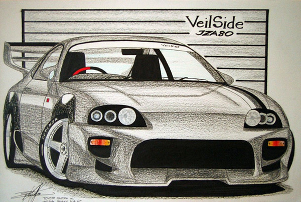 My drawing of Speed Racer's race car, The Mach-5.Materials used: Pencil, Colored Pencils, Gel pen, Pentel pen and 8B pencil.