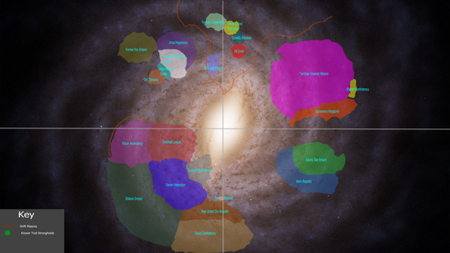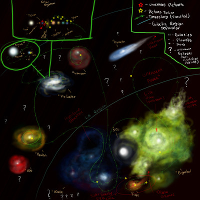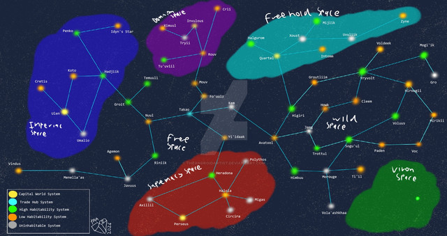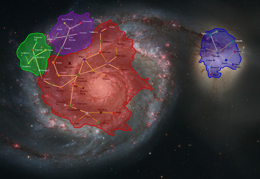This is so awesome though, what a great beginning to an amazing map! I just got done reading the description that goes with this, and loved every bit of it. How cool to see where everybody goes, and who rubs shoulders with who. For some reason I imagined that the Creatans would've been the first to encounter humans, but it looks like it was the Shans. What an interesting conflict that must have been! Do the Shan have other stars beyond the map, or are you going to put their homeworld somewhere in this one? Bliss must be an interesting place, considering the latent racial tension. Oh my...
