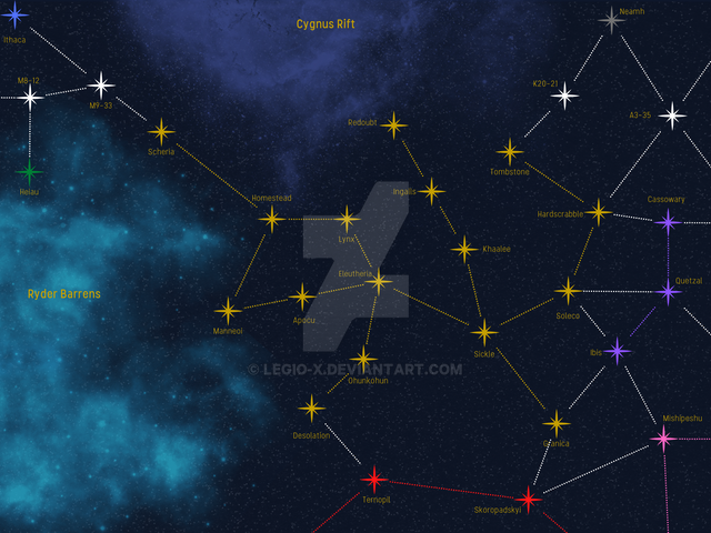 And yes! There are many stars beyond the named ones here, in Utopia as well as beyond. The most developed reions are probably Xarph and The Frontier where I have more detailed maps lying around for. The Shan homeworld is pretty far away, and I haven't decided much beyond that its a very damp and warm world with vast shallow "marsh oceans". But they're pretty agressive terraformers so most planets in their realm are pretty swamp-y.