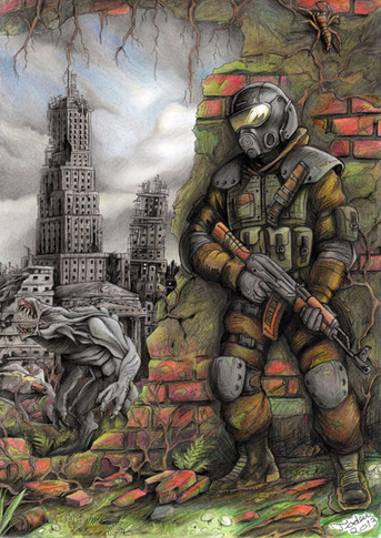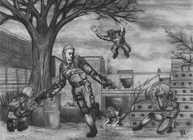 NCR Ranger surrounded by pack of Deathclaws in Falloutquite like this drawing