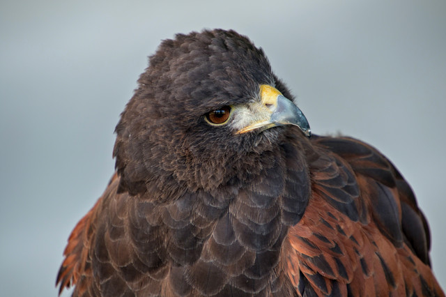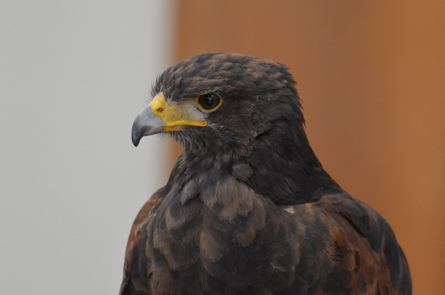 My friend's male Harris Hawk, Pharaoh. He landed on someone's head and gave us attitude about it.Feel free to use my photos as references and stock. Please give me credit if you use my photo! I would love to see what you make, so send me a link!