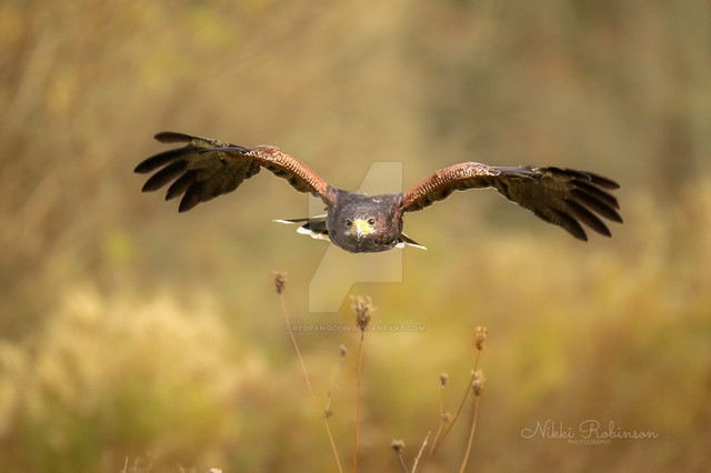 My friend's female Harris Hawk in flight.Feel free to use my photos as references and stock. Please give me credit if you use my photo! I would love to see what you make, so send me a link!