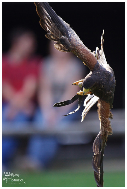 Pepper, our female Harris Hawk, getting ready to land.Feel free to use my photos as references and stock. Please give me credit if you use my photo! I would love to see what you make, so send me a link!