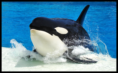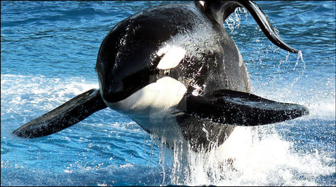 Taku, a killer whale, bows at SeaWorld.----------