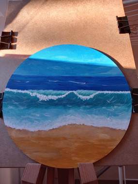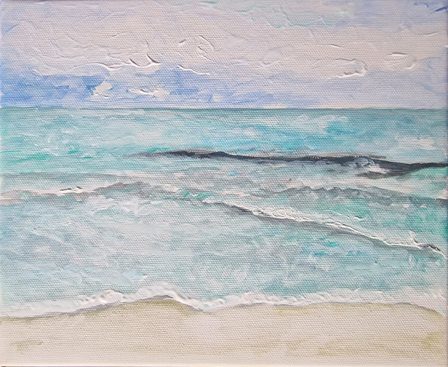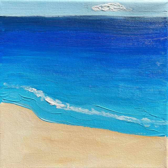 #traditionalart #acrylicpainting #bluesky #calming #lakewater #landscape #sand #summer #myartwork #originalpainting #art #wavessplashing
