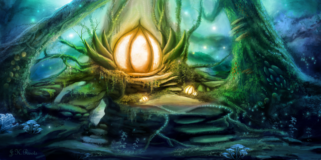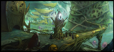 Oh wow! Those custom brushes seem to be coming along awesome! That is a beautiful scene there! And I really like the touch of colour variety added by that glowing orb... thing.