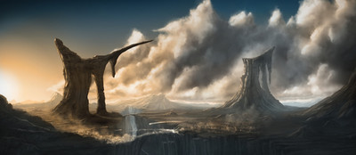 This one with the sunset is very cleaver as I can't tell if it's desert stone or snow that covers the land as both are affected by the sunlight and at this point in time it could be either. A closer look reveals the snow hidden in the shadows, still white inspite of the black though faided to blue grey. The clouds are a lovely touch and goodness knows how you got them to look so real! Clouds have to be one of the most difficult things to get right in a picture, even if you take them directly from another image they can still look wrong. These don't though, these look perfectly matched to the picture, as if you climbed the hill and took the photograph yourself.