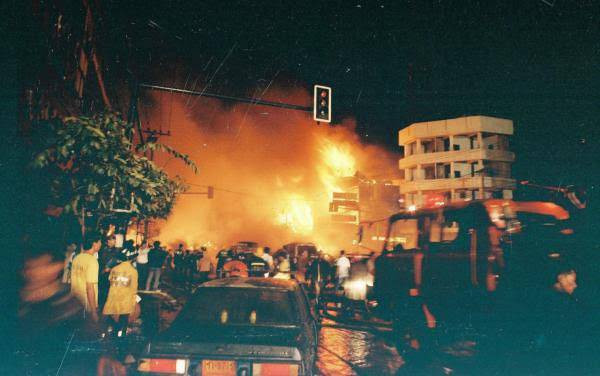 OMG, this is extremely scary. The street itself seems on fire... I think the bit that I find the most scary are the electric lines catching fire near the crowd...