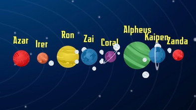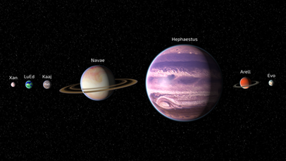 Ember: A Mars-like planet with two small captured moons.