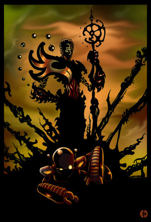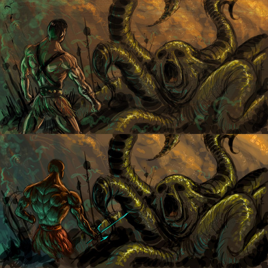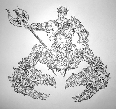 Work on perhaps the final rendering of a tattoo commission. I'm probably putting WAY too much detail into this bad boy. I may have to start from scratch and simplify. That would be a pain in the neck, but I've gotta do what's right for the piece. It IS going to be permanent, so yeah...In any case, please feel free to critique this guy. Anatomy or whatever. I know there's something off about that arm of his, but I really don't want to redraw it. Bah...