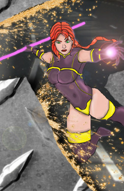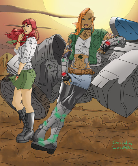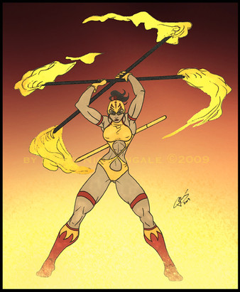 This is my rendition of 's superheroine Burncycle, who you can see in her SL incarnationhere . This was a fun character to draw, and even more fun to color; she seemed to blaze right off the screen.-Ed