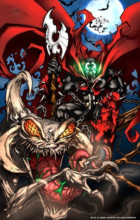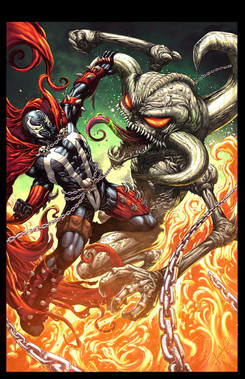 This is my trial inking and colouring for Philip Tan's version of Spawn. It was pretty difficult for at start inking his version of Spawn...eventually, I figured out how to handle his lines and hatches. Colouring was not a problem.