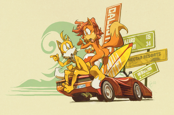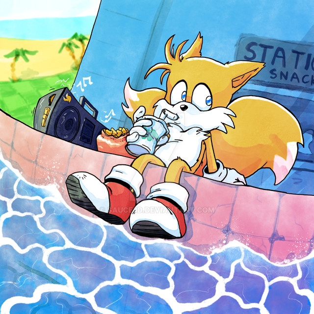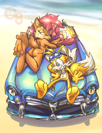 This is so cute! I love the way Tails is posed here, and how he's just enjoying the sea and sun and stuff!