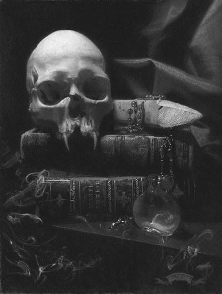 Graphite (Bic 2b .7mm) and Pastel (General's white) on toned gray paper (Strathmore).