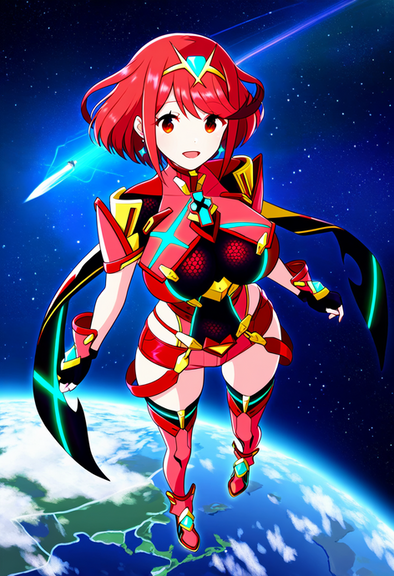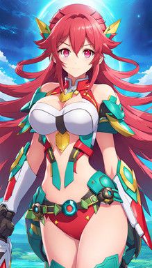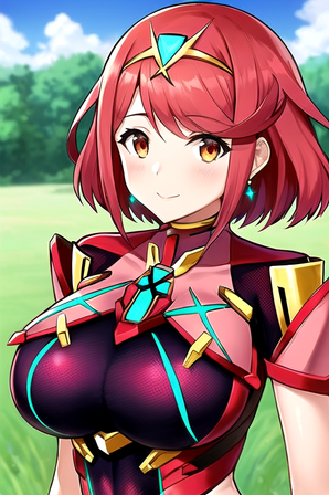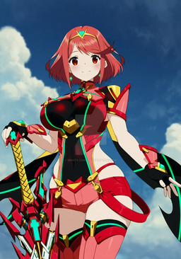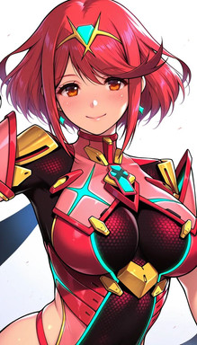 #clothes #earrings #pyra #tiara #red_eyes #red_hair #fingerless_gloves #short_hair #red_shorts #impossible_clothes #pyra_xenoblade