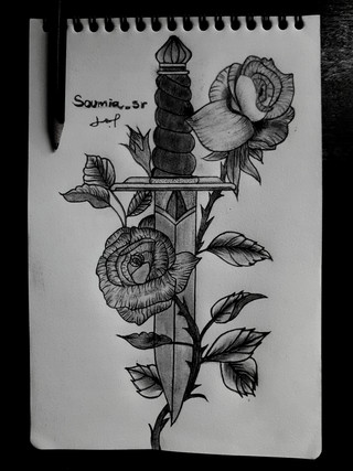 Strangely enough, when I used to play Sims 3 I would do this exact tattoo, a rose with a dagger it. Sadly the two were separate so I had to create two different layers and put the dagger first then the rose on top.