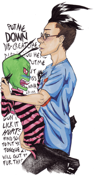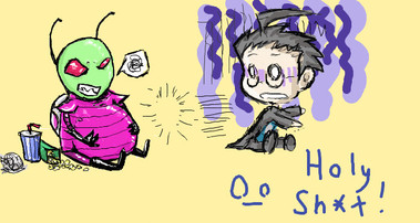 I made this with the intention of scaring the crap out of my Jhonen-Vasquez-loving friend. Tho looking at this now I may well scar her for life... (one can only hope lol)The truth is, unfortunately, I'd never seen this show until last night (when I happened to be babysitting someone who had foxtel lol) and it was love at first sight. It's just a beautiful chaos of crazi-ness... Tho my yaoi-senses instantly realised Zim and Dib's loathing for each other was most definately supressed sexual tension