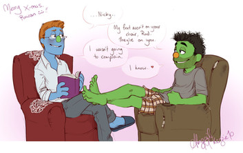 ..I'd 'mature content' this... but they's still gots their clothes on. Pity.