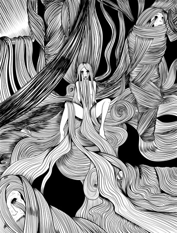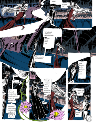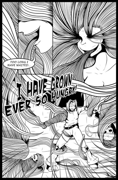 My favorite panel might be in the sixth page when the hair had just started to show through her mouth, it adds an instant chill to the tale and makes your breath catch.