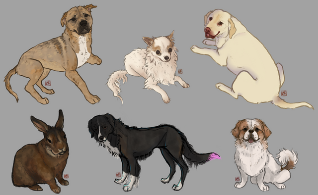 I'll update this as more characters get introducedRusty is a 2-year-old liver brindle Border Collie. She's lived her life on the streets, and has trouble trusting most humans. Unless they offer her food, the quickest way to her heart.