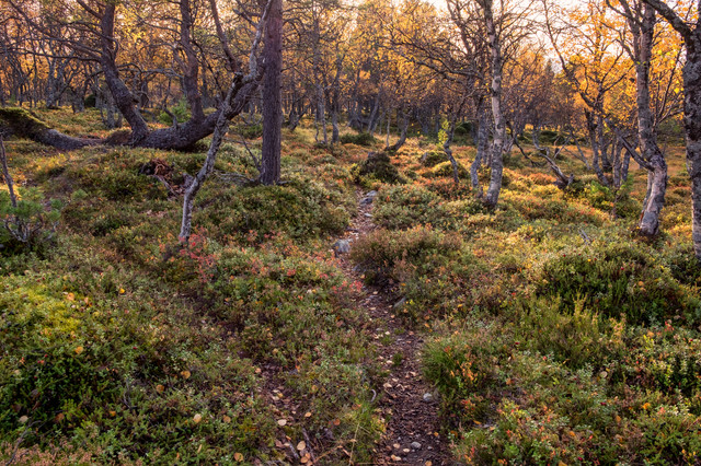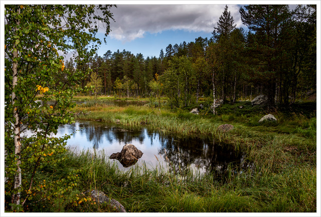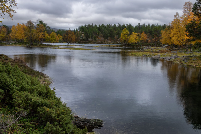 A sunny autumn day in Femundsmarka, Norway. Lot of standing and flowing water everywhere between the rocks, schrubs and open forest. The serenity was unreal and I met nobody from morning to evening.