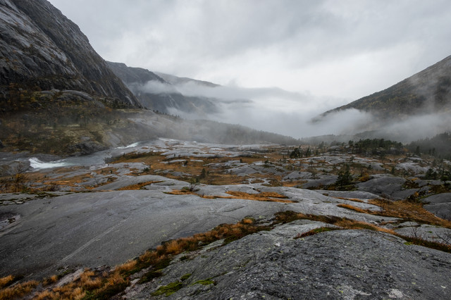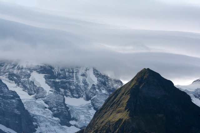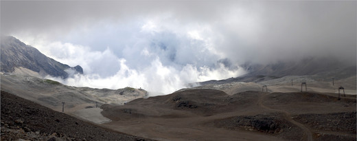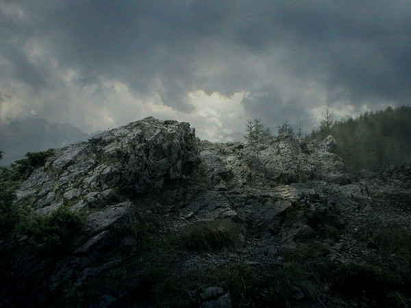 Kind of looks like giant rocky spikes and featurs surfacing from a sea of clouds. At least to me.