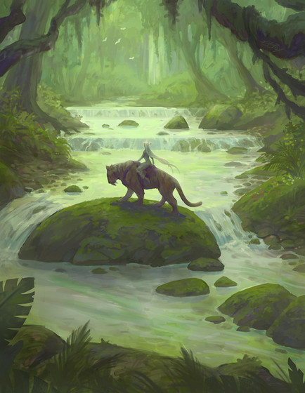 The image was first painted digitally in grayscale to establish the composition of light and shadow. Colors were later painted on a separate layer. In the end the grayscale and color layers were merged together before final minor changes. This was made for a graphics contest (reached the 3rd place) and I ran out of time to make the work extremely polished, but wanted to create an eye-catching and memorable composition.
