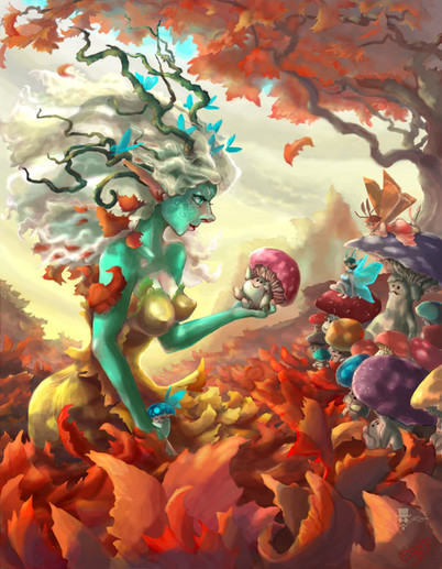 This makes me think of a Goddess of Nature who has fallen asleep as she is very tired to keep everything together. I really love this. Color balance is awesome, atmosphere, absolutely everything is awesome about this♥