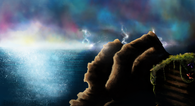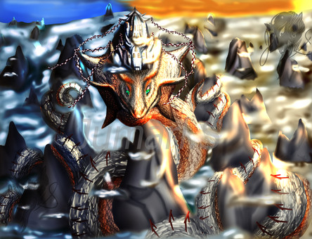 #light #artist #artwork #cold #digitalart #digitalpainting #dragon #drawing #fantasy #lake #landscape #nature #paint #painting #photoshop #rock #scenery #statue #warm #water #art