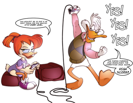 This is perfect - really, it comprises this part of their relationship so well. By the way, what is Drake Mallard's French name? Darkwing Duck is Myster Mask, right? I always loved that alias.