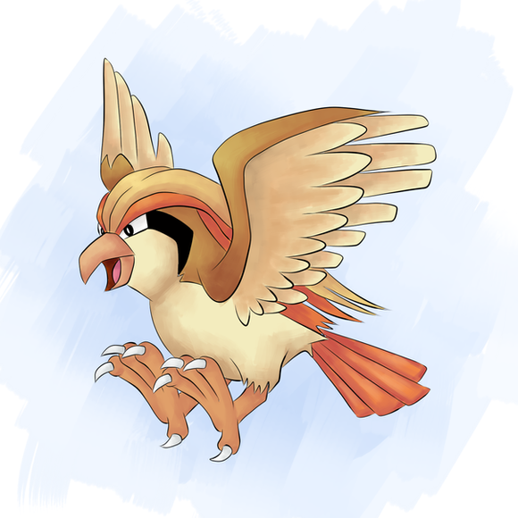 Pidgey and its forms are kinda important Pokemon for me; the very first Pokemon I've ever caught was a Pidgey on Route 29 in Johto in Silver version, it was a lv. 2 female, nicknamed Sauri. I was using her through whole Johto. Also in every game I played later I tried to catch a pidgey and call it Sauri. She's one ย of my Pokemon OCs, too. Later, in Soul Silver, I caught a shiny Pidgey, again female, nicknamed Kin. So yeah, I love pidgeys. :3